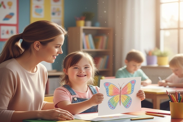 2- آموزش تحصیلی و شناختی : آموزش تحصیلی و شناختی برای افراد مبتلا به سندرم داون با توجه به توانایی‌های هر فرد طراحی می‌شود. استفاده از روش‌های آموزشی ویژه، تمرین حافظه و تمرکز، و فعالیت‌های عملی و بازی ‌محور به آن‌ها کمک می‌کند مهارت‌های ذهنی خود را تقویت کنند. این آموزش‌ها باعث می‌شوند یادگیری برای آن‌ها جذاب‌تر و مؤثرتر باشد و بتوانند مهارت‌های تحصیلی و حل مسئله را بهتر فرا بگیرند.