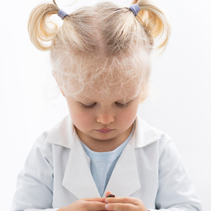 در سنین ۲ تا ۳ سالگی: اولین علائم بیماری ظاهر می‌شود. پوست چروکیده، رشد غیرطبیعی، ریزش مو و کاهش رشد در این سن به وضوح قابل مشاهده هستند.